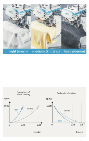 Stroj skrajša odzivne čase zagona in zaustavitve za 40–50 %, zaradi česar je šivanje bolj gladko in hitrejše, kar znatno poveča produktivnost.